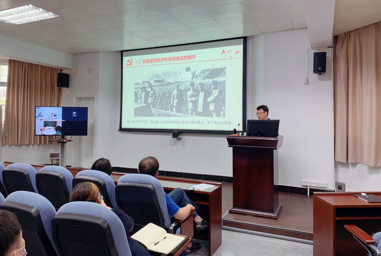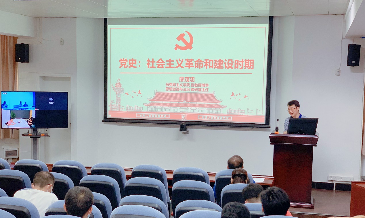 接着,开展全员集中党史教育学习。本次邀请了马克思主义学院廖茂忠教授,为大家讲授《党史:社会主义革命和建设时期》专题党史课。廖教授围绕新中国成立初期新民主主义到社会主义的过渡,社会主义建设探索中的良好开端和曲折发展,以及党在这段时期所做的各项重要举措和取得的历史性成就展开论述,带领大家重温我党在社会主义革命和建设时期的奋斗历程。