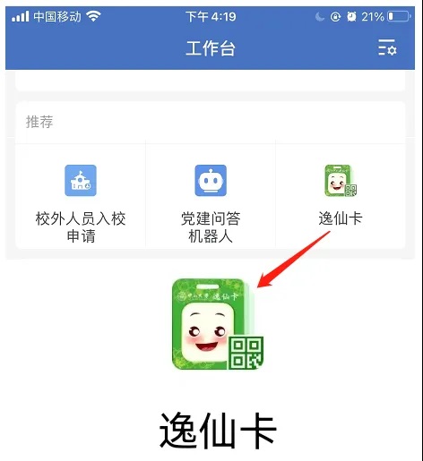 A:中山大学企业微信-工作台-“逸仙卡”应用(推荐使用)