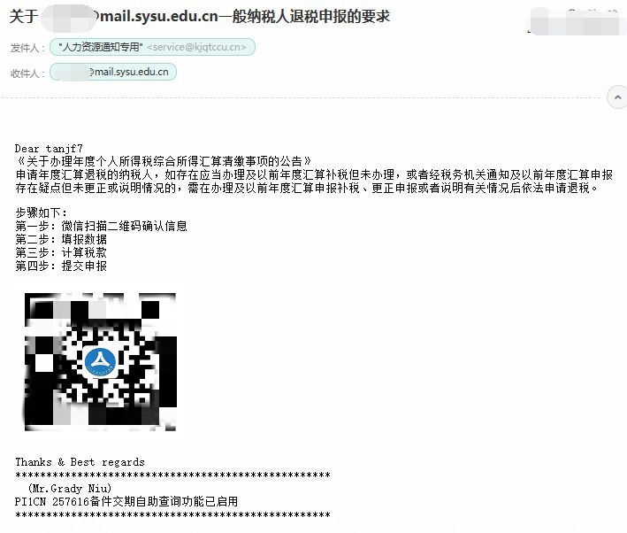 1、不论发件人是谁,邮件内扫二维码领补贴、退税,是诈骗!