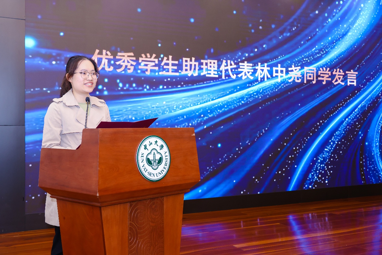 学生代表、生命科学院研究生林中尧分享了在网络中心担任学生助理四年的成长感悟。她说:“中心不仅是技术摇篮,更教会我服务与担当。每一次帮助师生解决问题,都让我体会到温暖连接的价值。”