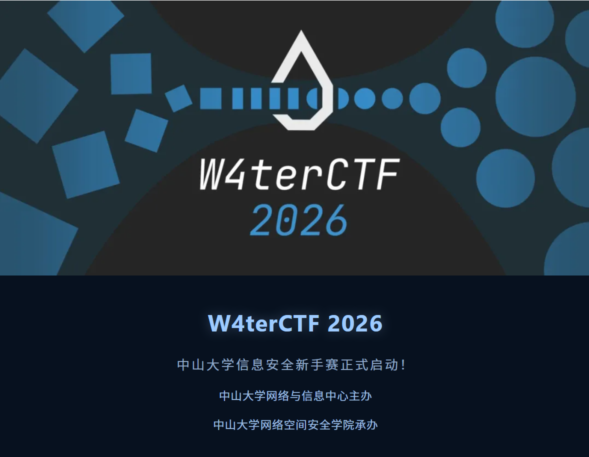 活动详情请点击查看《 W4terCTF 2026 中山大学信息安全新手赛来袭!》