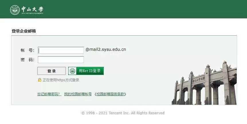 邮箱账号NetID@mail2.sysu.edu.cn:该邮箱服务面向全体在校全日制本科生、硕士及博士。此邮箱在学生毕业后将转为校友邮箱,可继续使用,邮箱内原有邮件也会保留。