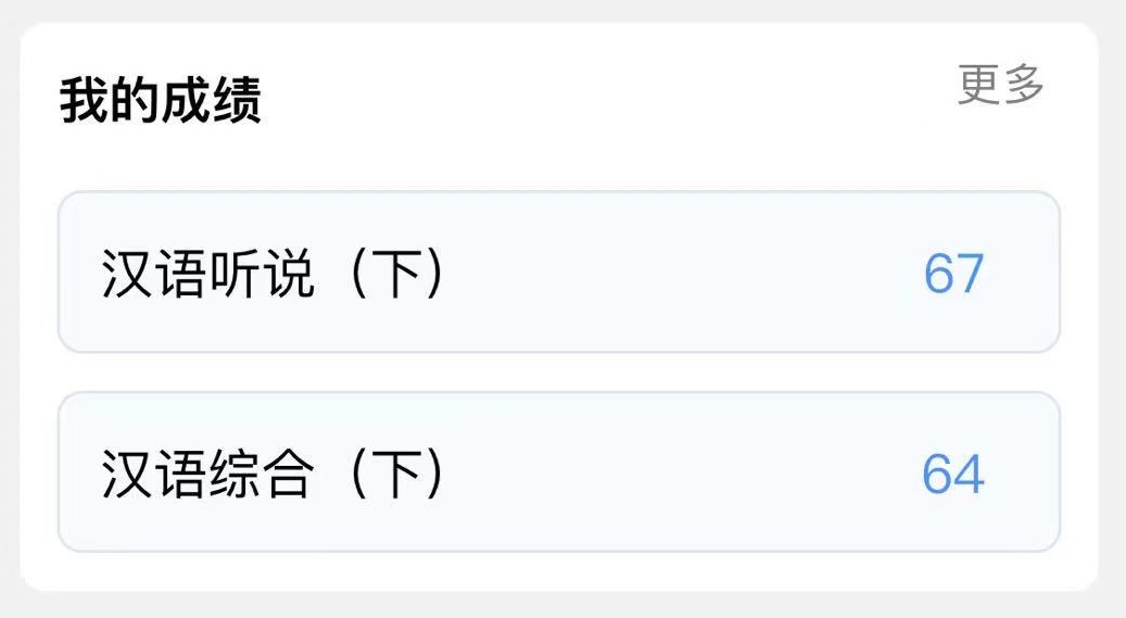 - 展示最近学生个人成绩情况,点击【更多】可查看学生个人成绩和绩点排名。