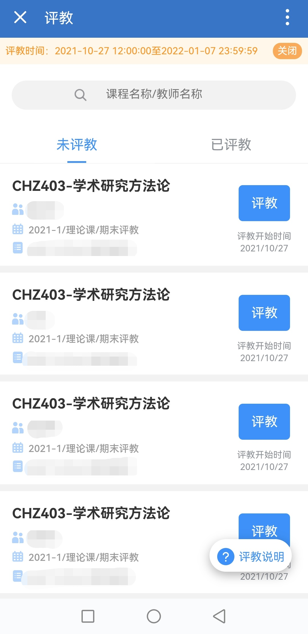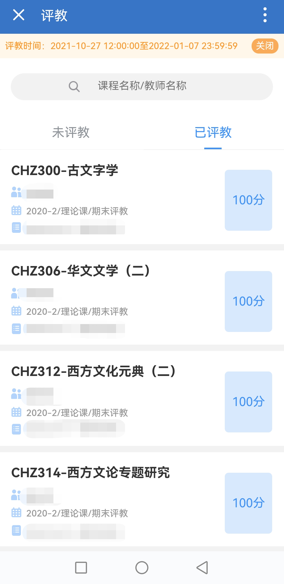 - 操作简单,页面简洁,未评教和已评教的课程分区展示,一目了然。