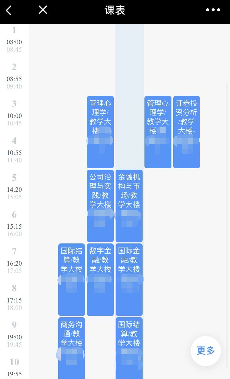 课表查询、公告、我的学业、我的成绩、我的评教、选课等。