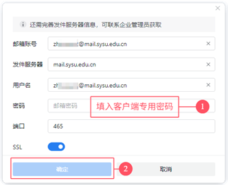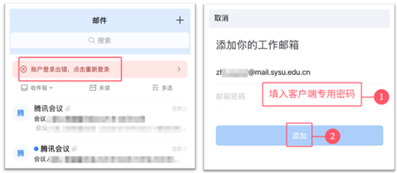 1. 企业微信邮件:企业微信无法直接修改已配置的邮箱密码。生成客户端专用密码后,需等待企微邮件提示“账号登录出错…”,点击提示,并填入客户端专用密码,完成密码更新。